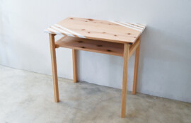 扉と引き出しは取っ手なしで制作。扉に引っ掛かに指をかけて開閉します。
