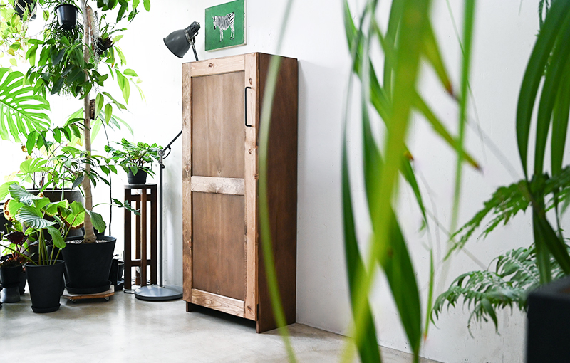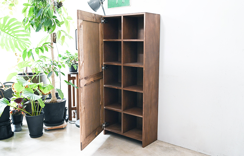 空間に置くだけで、どこか落ち着いた時間が流れるような、そんな木製ロッカーです。