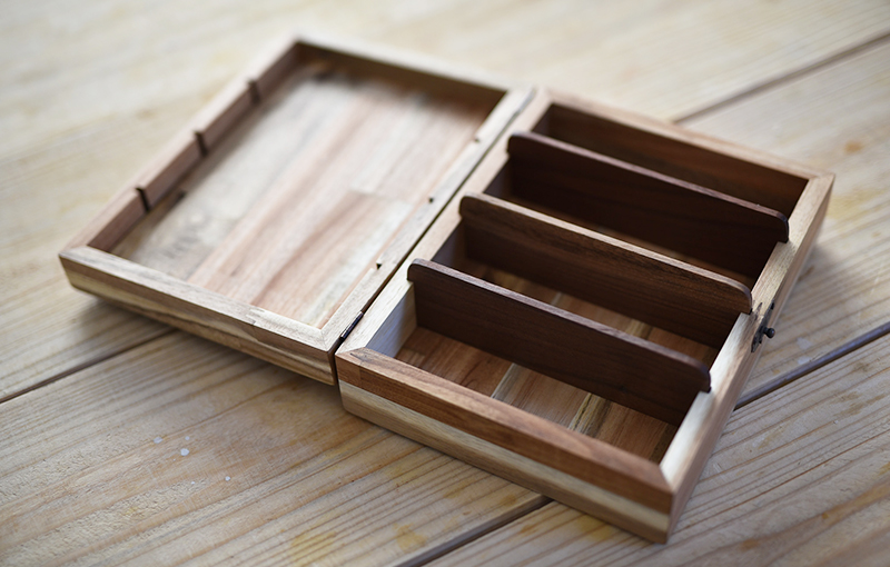 木の小物入れは、サイズや仕切りの形、金具の種類など、使い方に合わせた細かな調整が可能です。