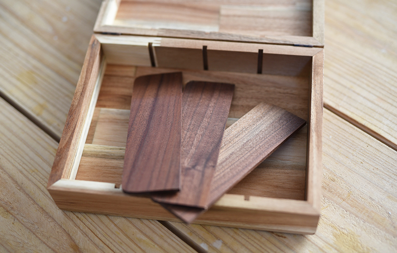 仕切り板や仕切りを入れる溝、箱の作りも、美しいものを作るためには精密で丁寧な手作業が必要です。