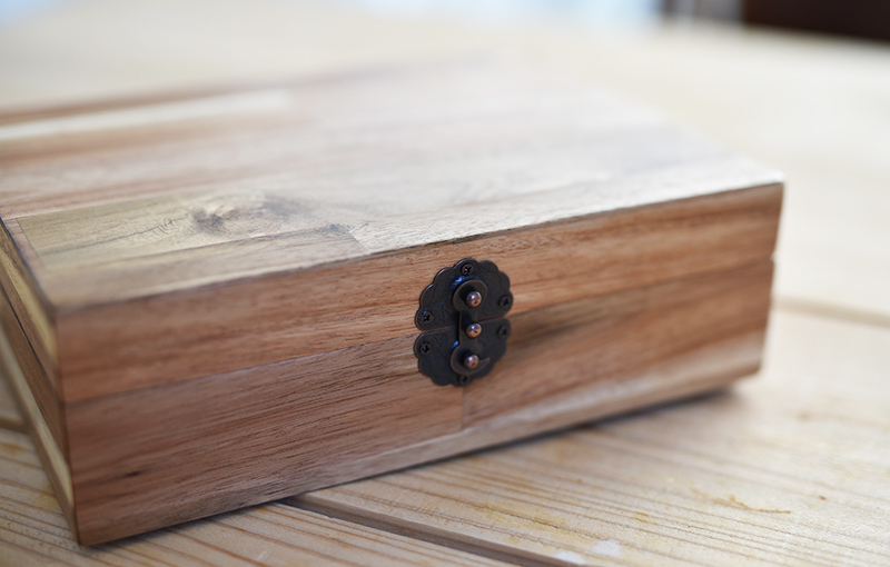 フタのロックと蝶番にはアイアンをチョイス。かわいい雰囲気になりました。